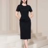 Mẫu đầm đen dáng midi DK8481 toát lên vẻ đẹp thanh lịch chuẩn mực của thời trang cao cấp, với phom dáng ôm vừa vặn giúp tôn trọn đường cong cơ thể một cách tinh tế và đầy khí chất. Thiết kế cổ tròn kín đáo kết hợp tay ngắn gọn gàng tạo nên tổng thể trang nhã, chuẩn mực nhưng không hề đơn điệu, phù hợp cho cả môi trường công sở cao cấp lẫn các sự kiện trang trọng.