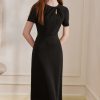 Thiết kế váy không chỉ giúp tôn dáng hiệu quả mà còn mang đến sự thoải mái, dễ ứng dụng trong nhiều hoàn cảnh khác nhau, từ không gian công sở thanh lịch đến những buổi gặp gỡ trang nhã, tinh tế. Tổng thể chiều dài váy góp phần hoàn thiện vẻ đẹp sang trọng, duyên dáng và cao cấp của mẫu đầm, giúp người mặc toát lên phong thái tự tin, thanh lịch và khí chất tinh tế đúng tinh thần thời trang luxury.