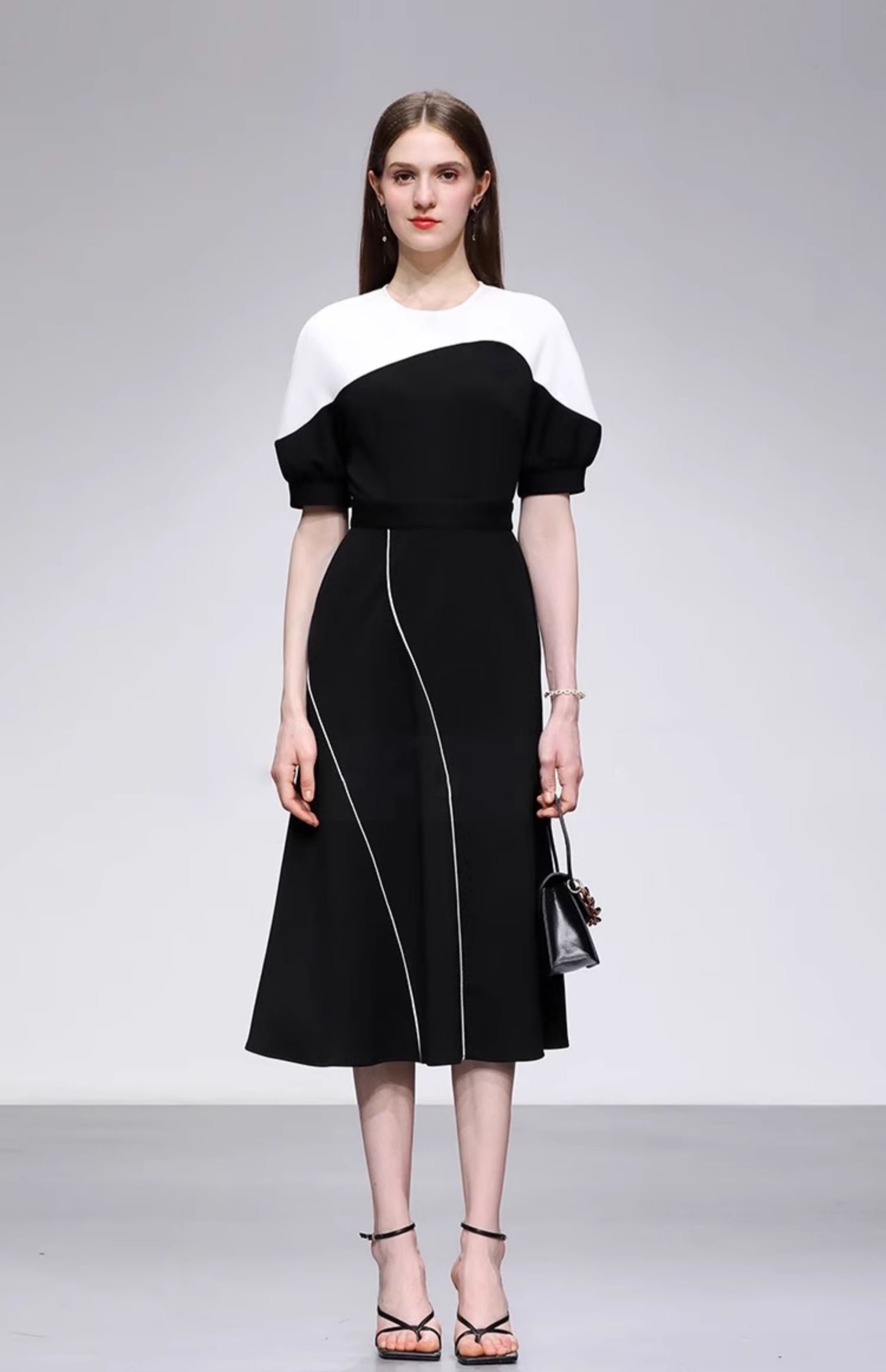 Đầm Đen Phối Trắng Dự Tiệc GEMMI Fashion, DK8671