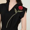 Chi tiết hoa và thân lá được xử lý tinh xảo, mang giá trị tạo hình cao cấp, vừa gợi cảm hứng nữ tính, mềm mại, vừa toát lên vẻ đẹp quý phái, thanh lịch và khác biệt. Không phô trương, không cầu kỳ, nhưng chính sự tiết chế tinh tế trong điểm nhấn này lại tạo nên khí chất sang trọng rất riêng, thể hiện đẳng cấp thẩm mỹ tinh giản, chuẩn mực và đậm tinh thần thời trang luxury, giúp người mặc trở nên nổi bật một cách tự nhiên, trang nhã và đầy sức hút.
