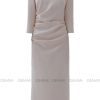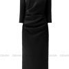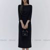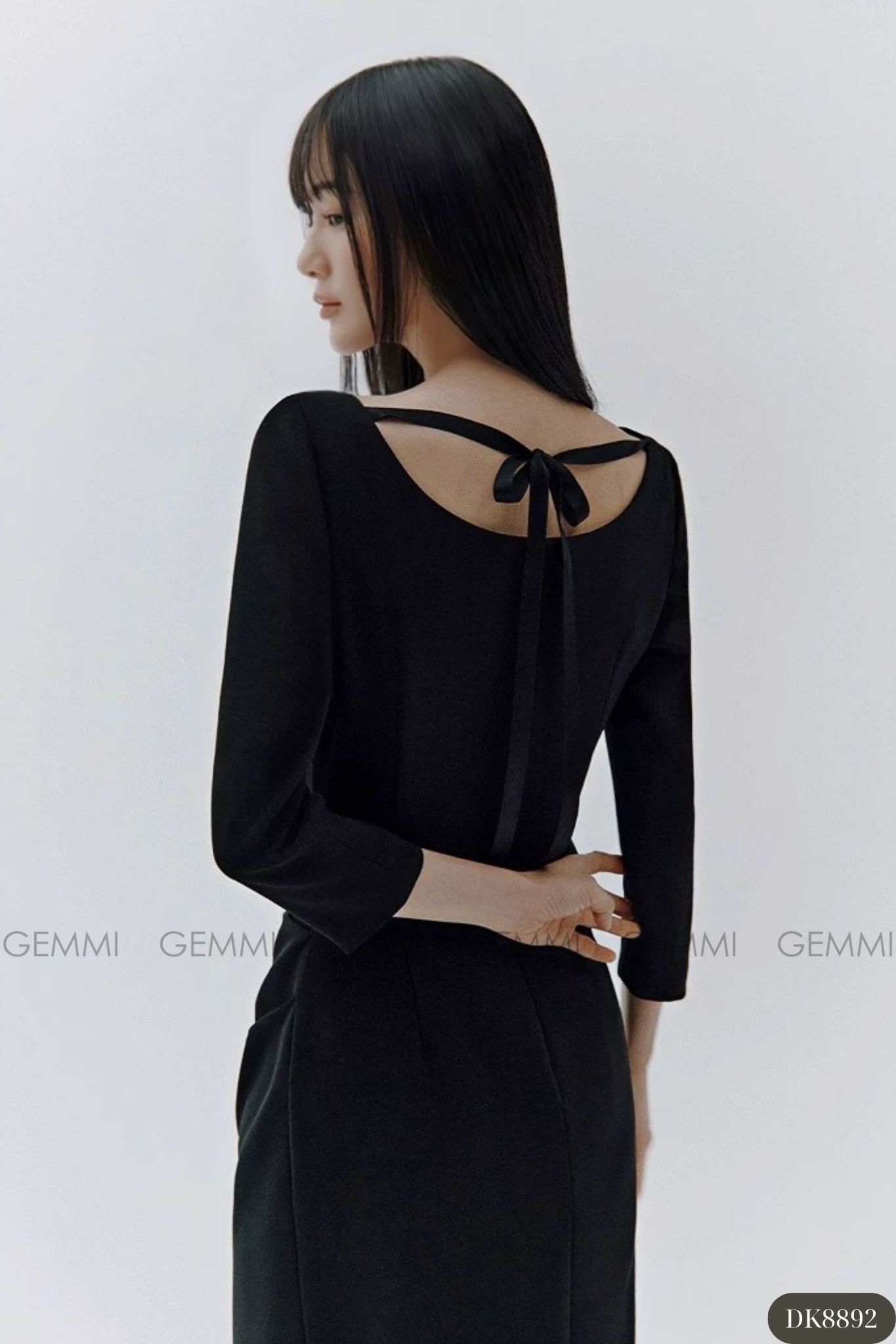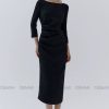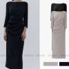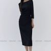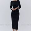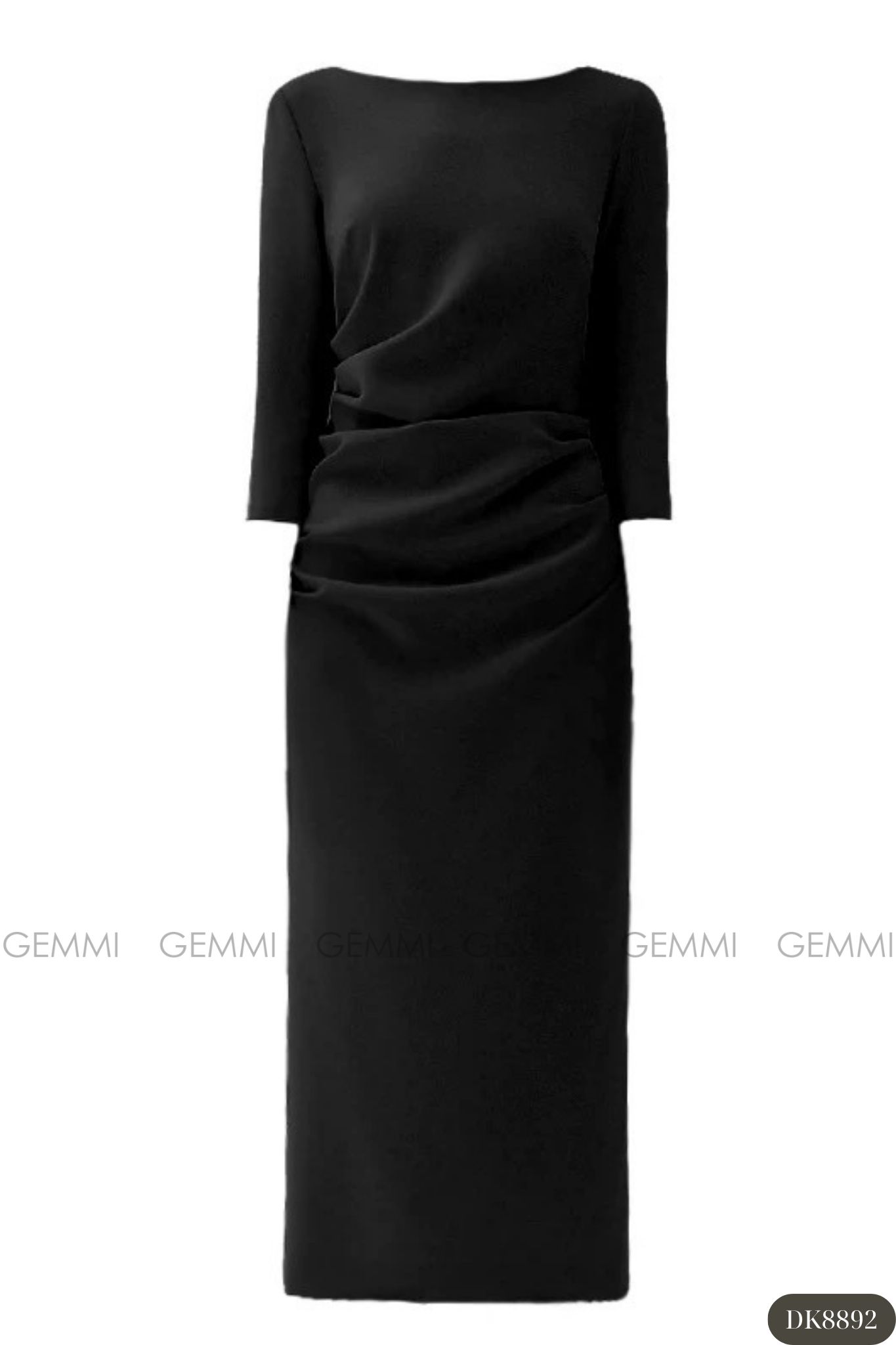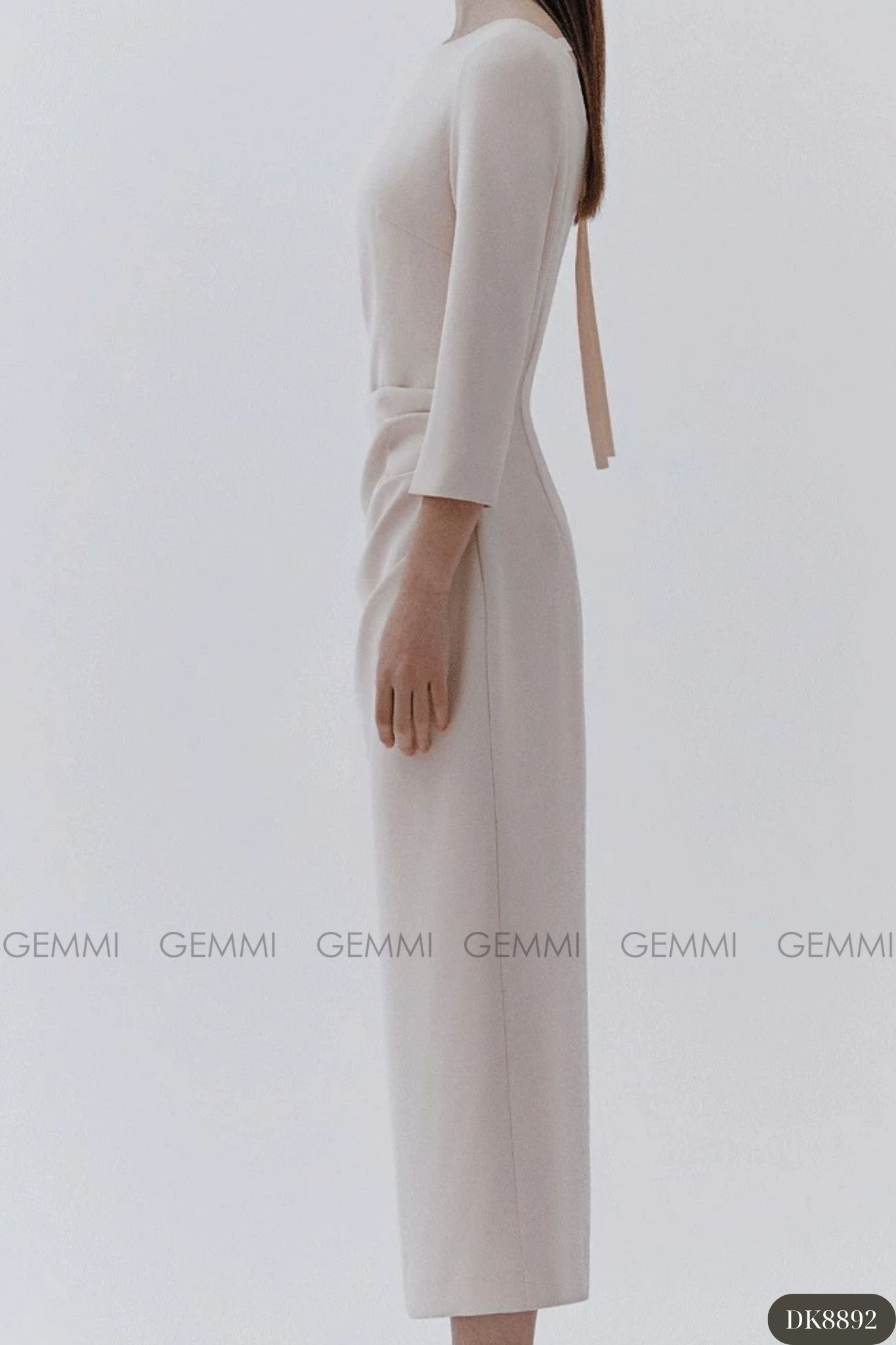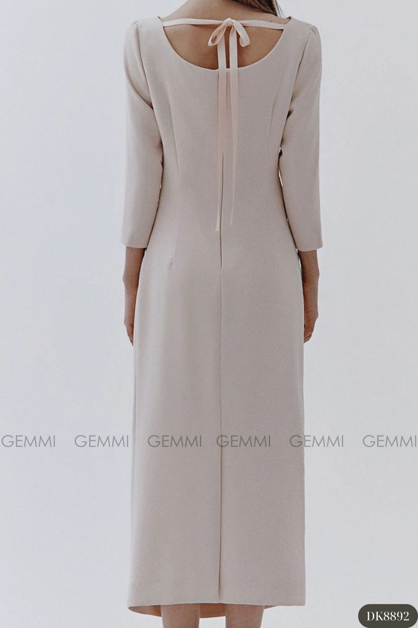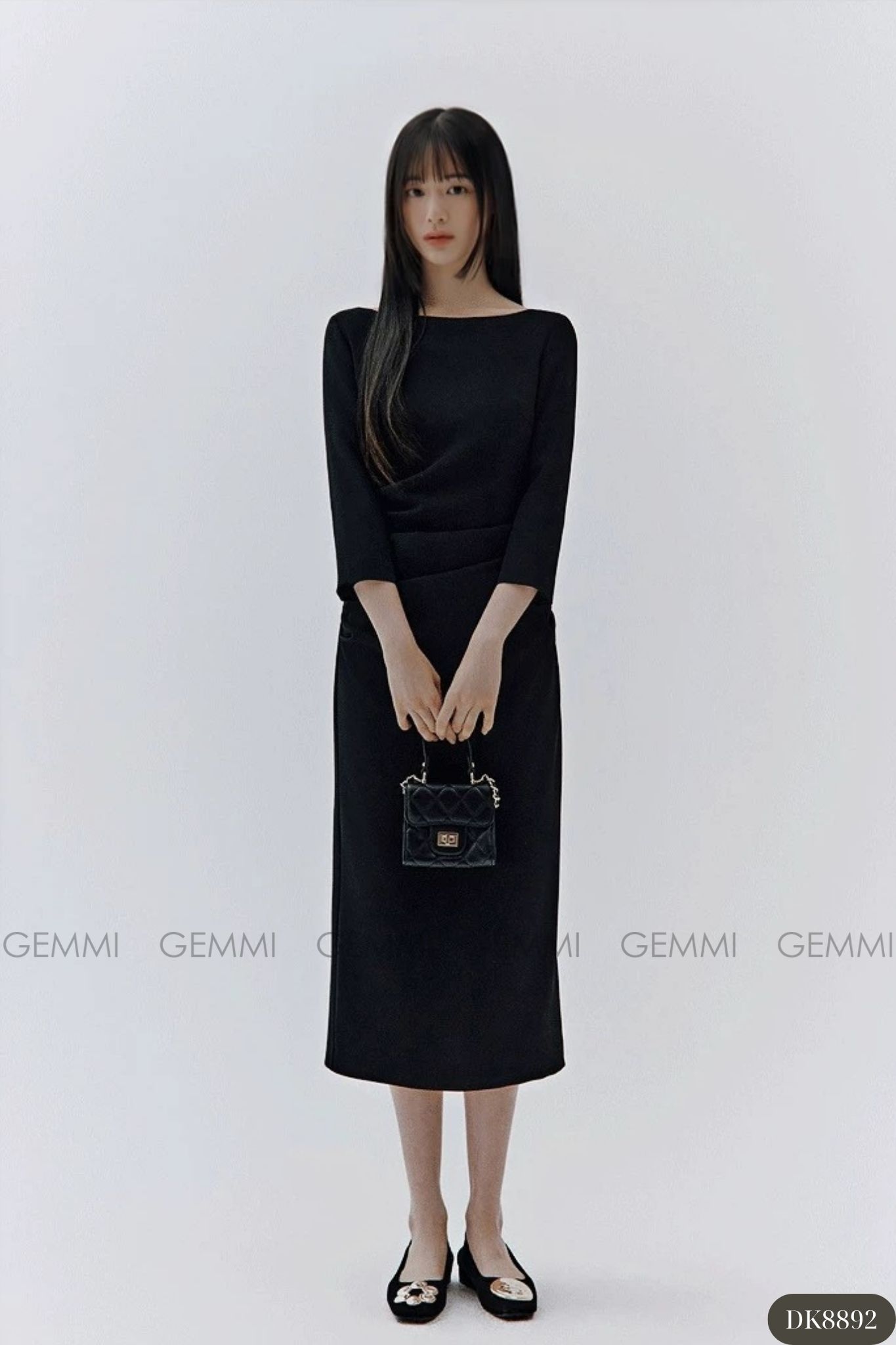 Đầm midi tay dài cổ thuyền xếp ly eo GEMMI, DK8892