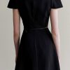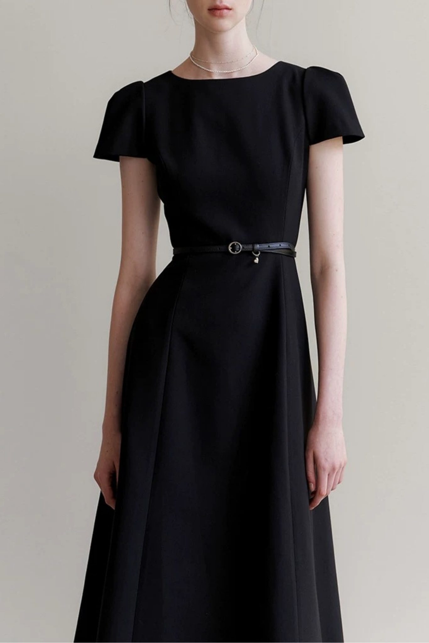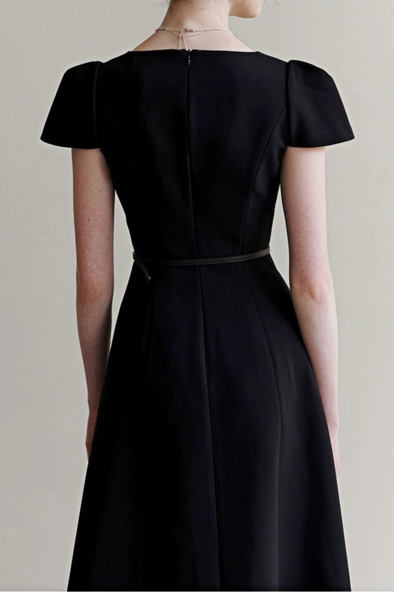 Chi tiết tay áo không chỉ đóng vai trò thẩm mỹ mà còn góp phần định hình phong thái cho toàn bộ thiết kế, mang đến vẻ đẹp nữ tính, trang nhã và duyên dáng theo cách rất tinh tế, không phô trương nhưng đầy cuốn hút. Sự kết hợp giữa dáng tay cánh mềm mại và phom đầm chuẩn mực tạo nên hình ảnh người phụ nữ thanh lịch, quý phái và sang trọng, phù hợp với những không gian trang trọng, yêu cầu sự chỉn chu và đẳng cấp trong phong cách ăn mặc.