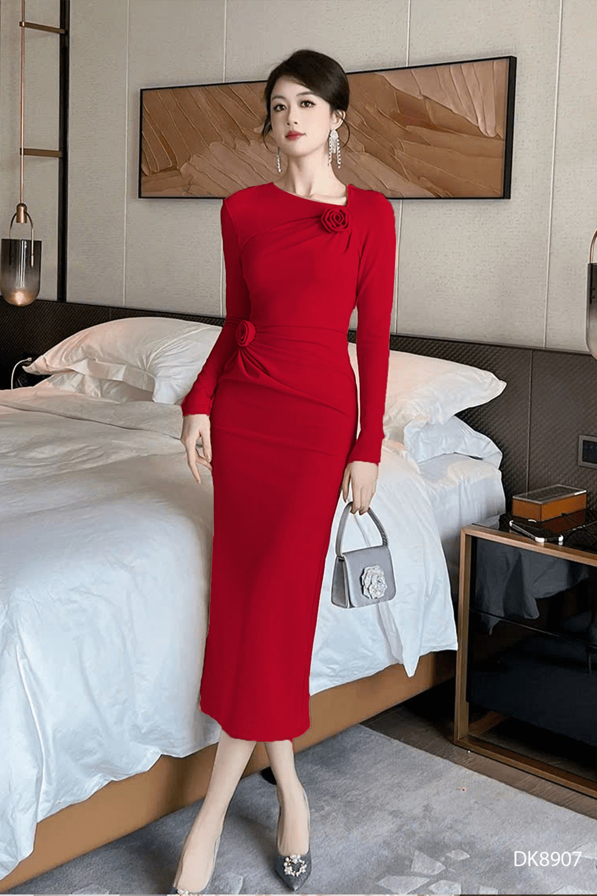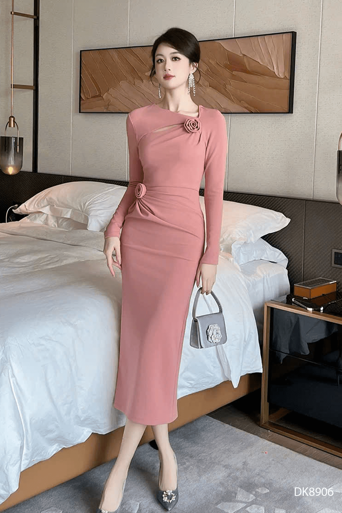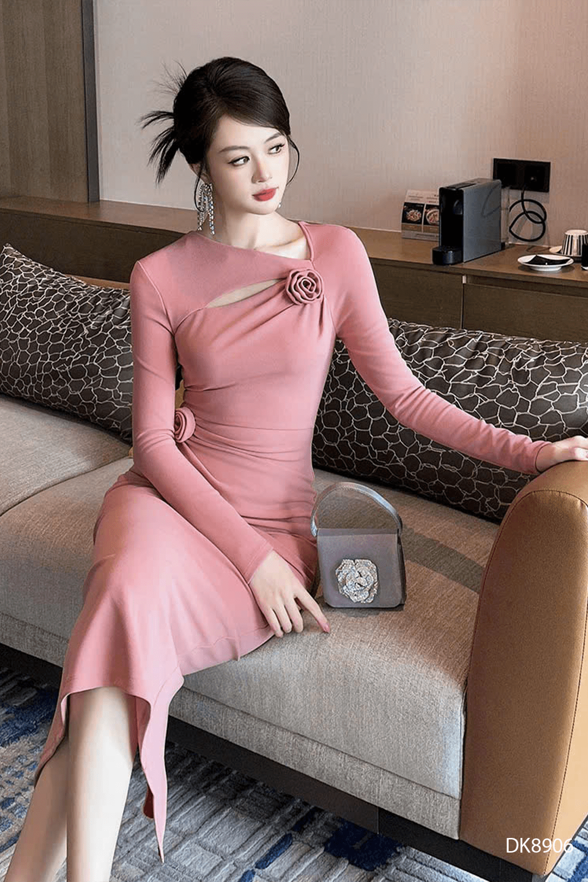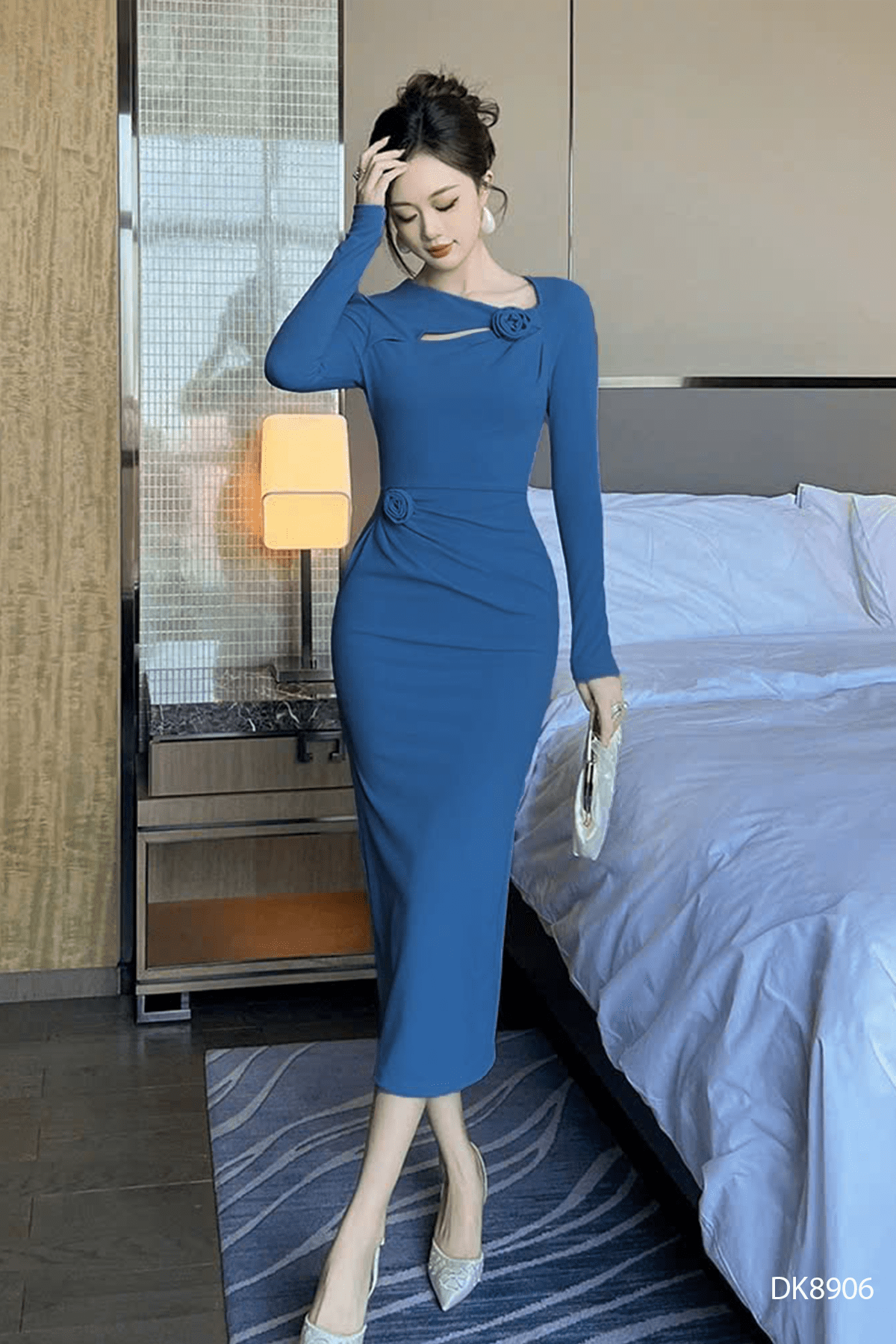 Mẫu đầm DK8906 thể hiện sự kết hợp hài hòa giữa phom dáng ôm được xây dựng chuẩn mực, kỹ thuật xử lý chi tiết tinh xảo và bảng màu mang sắc thái sang trọng. Từng đường cắt may được tính toán kỹ lưỡng nhằm ôm gọn cơ thể một cách vừa vặn, tôn lên những đường cong mềm mại mà vẫn giữ trọn sự chừng mực cần thiết. Thiết kế hướng đến vẻ đẹp có chiều sâu, nơi mỗi chi tiết đều góp phần tạo nên tổng thể cân đối, thanh thoát và giàu giá trị thẩm mỹ.