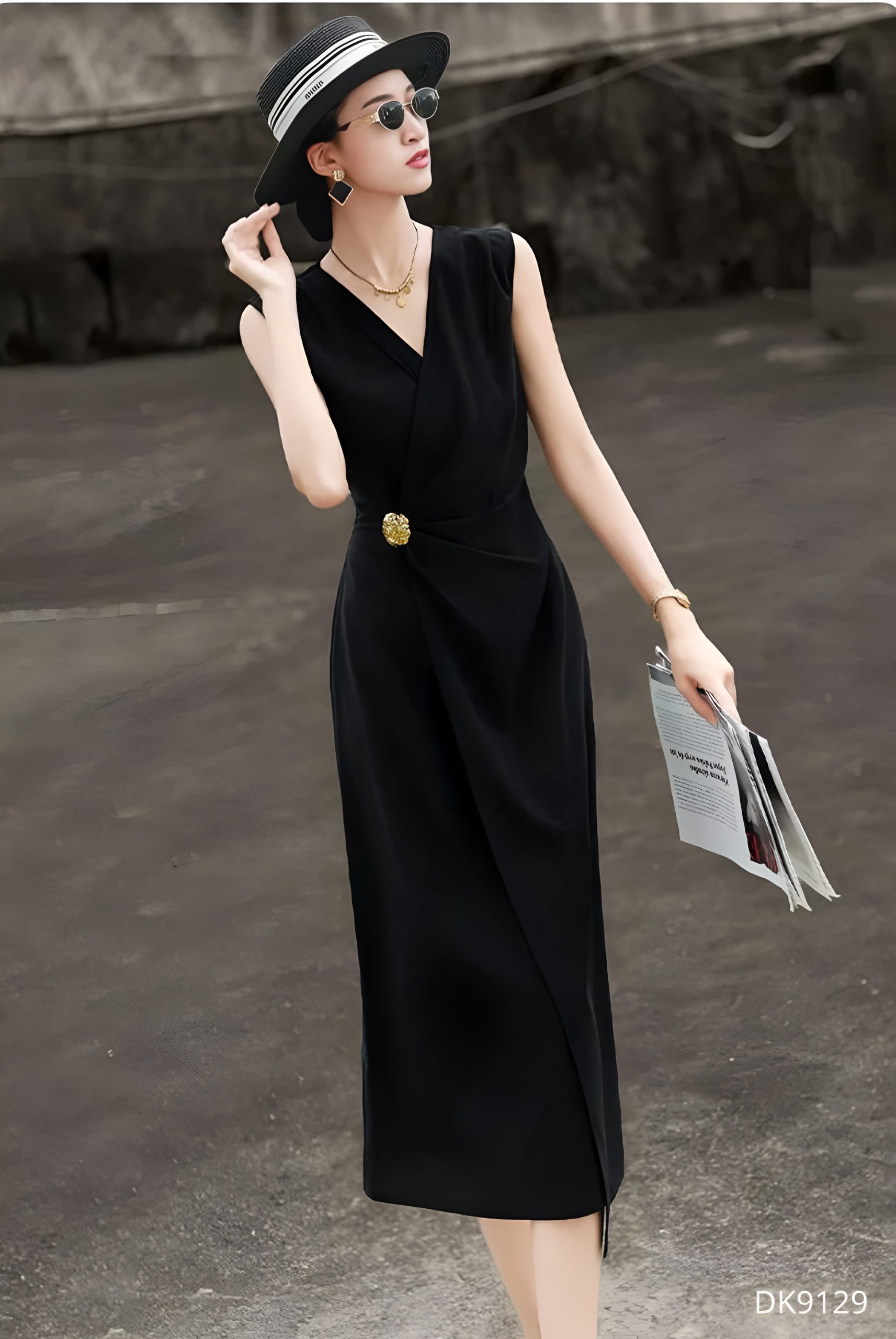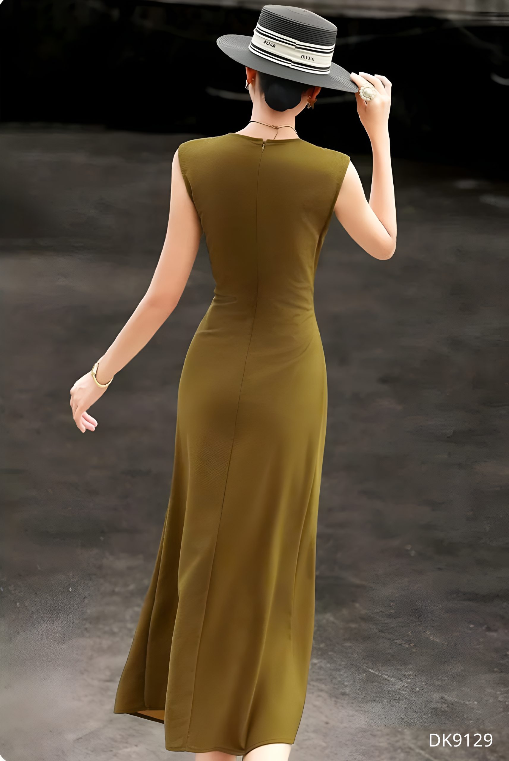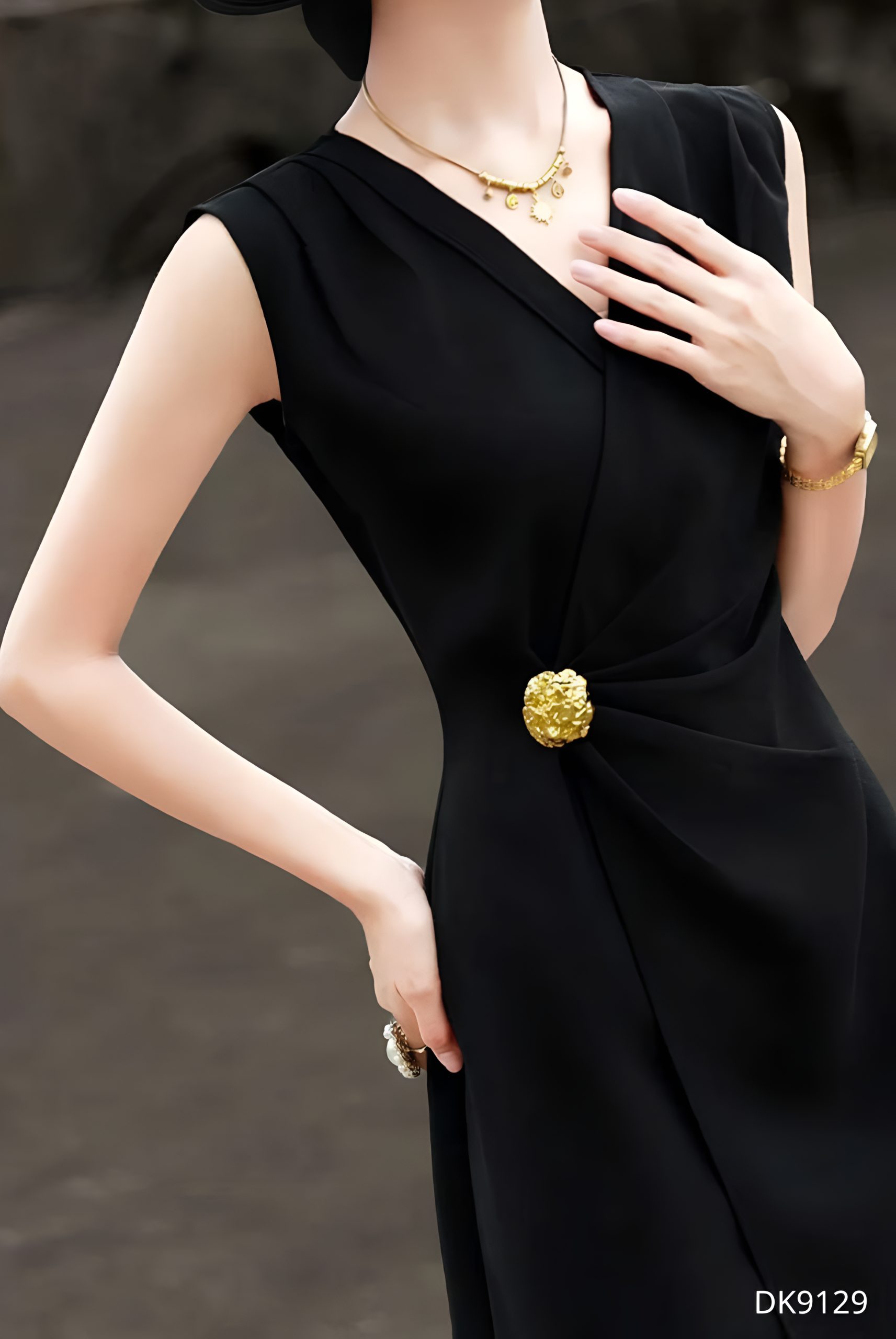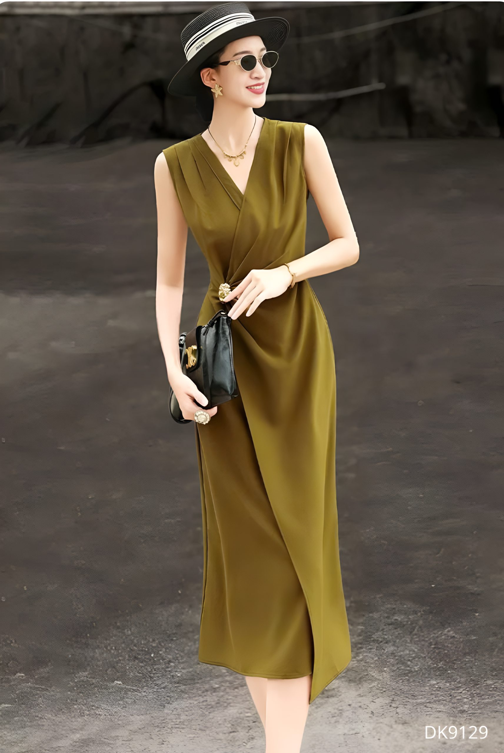Chiếc đầm DK9129 mang tông màu trầm ấm toát lên vẻ đẹp thanh lịch đầy chiều sâu, như một tuyên ngôn tinh tế của phong cách tối giản hiện đại. Thiết kế cổ V được xử lý mềm mại giúp tôn lên đường nét thanh thoát nơi xương quai xanh, trong khi phần thân đầm được draping khéo léo, tạo hiệu ứng ôm nhẹ và uyển chuyển theo từng chuyển động cơ thể. Điểm nhấn thắt eo tinh xảo không chỉ định hình vóc dáng mà còn mang lại cảm giác cân đối, tôn lên vẻ nữ tính một cách kín đáo.