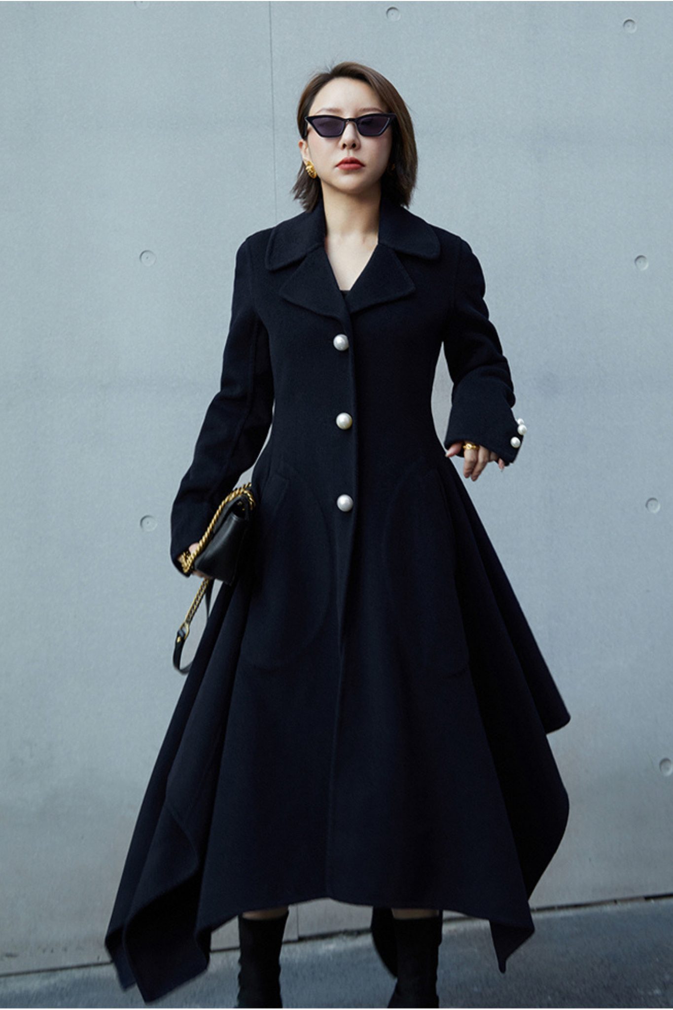 Áo khoác măng tô nữ thiết kế cúc ngọc trai dáng dài dạ cao cấp Gemmi fashion, MS115