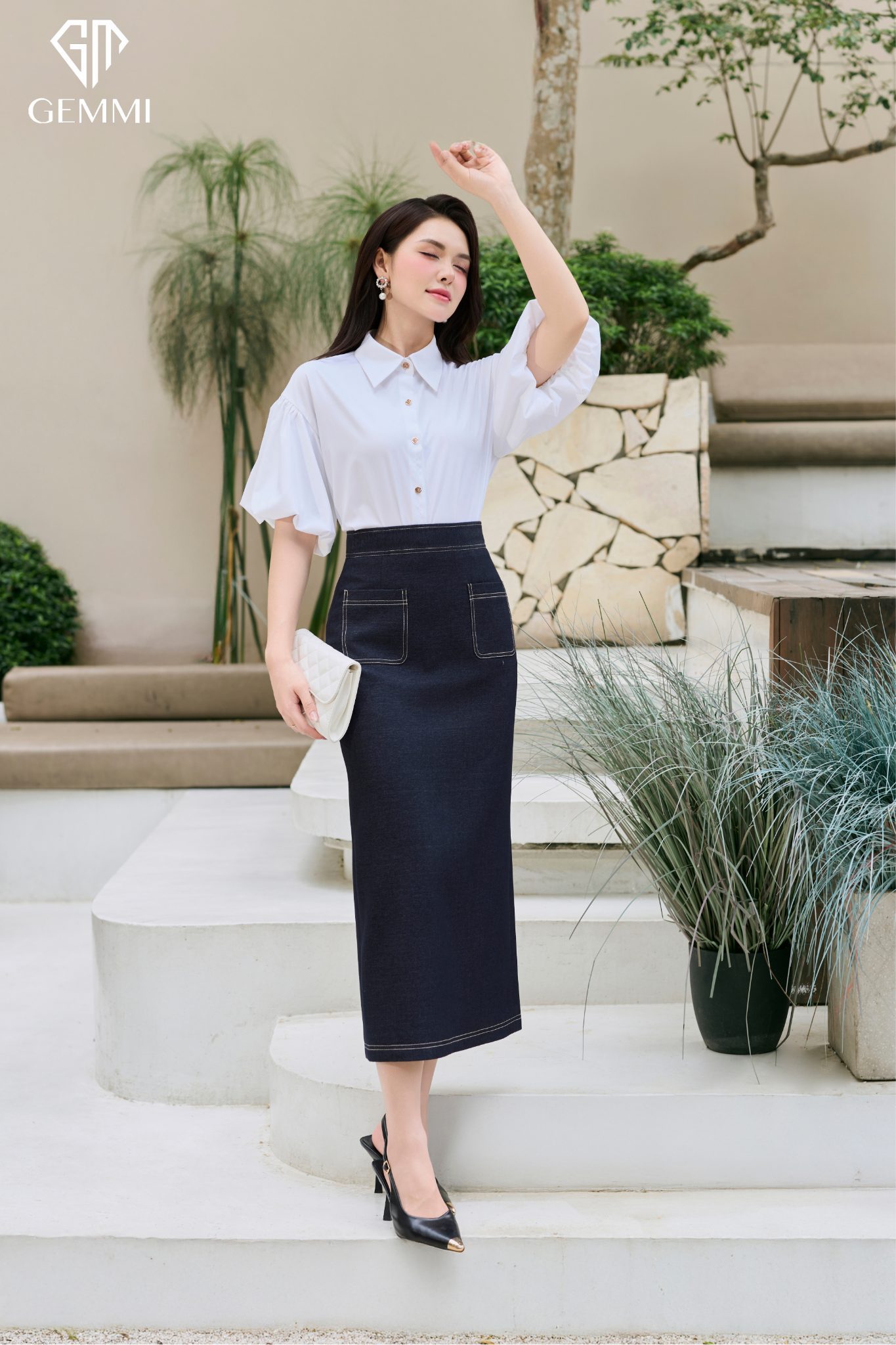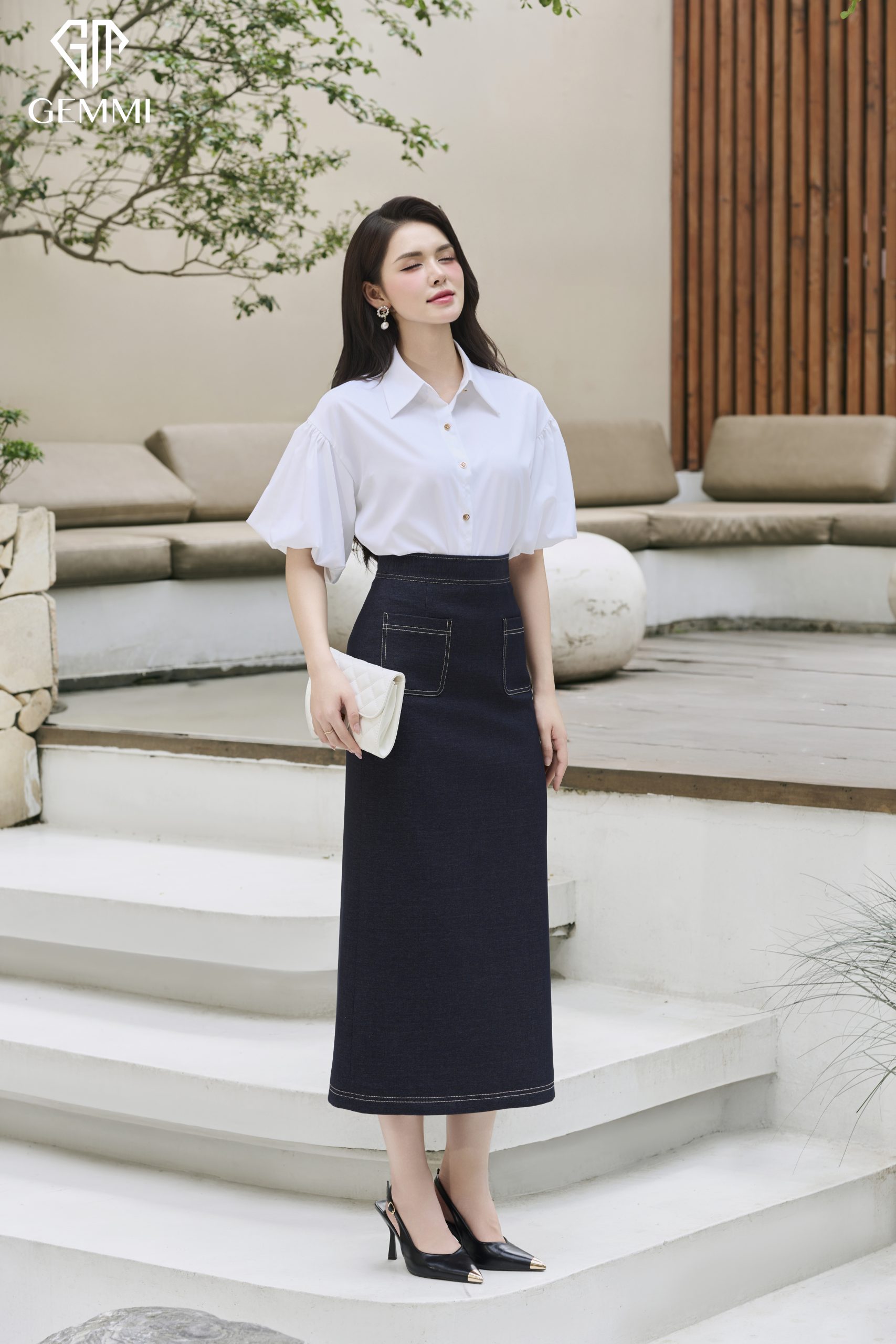 Khi di chuyển, thân váy vẫn đảm bảo được độ mềm mại cần thiết, tạo nên chuyển động nhẹ nhàng và tự nhiên theo từng bước chân. Chất liệu mang lại cảm giác thoải mái, nhẹ nhàng, giúp người mặc dễ dàng ứng dụng trong suốt ngày dài làm việc hoặc trong những buổi gặp gỡ mang tính trang trọng. Sự hài hòa giữa tính thẩm mỹ và trải nghiệm mặc thể hiện rõ tinh thần thời trang cao cấp, nơi sự tiện dụng được nâng tầm bằng vẻ đẹp tinh tế và sang trọng.