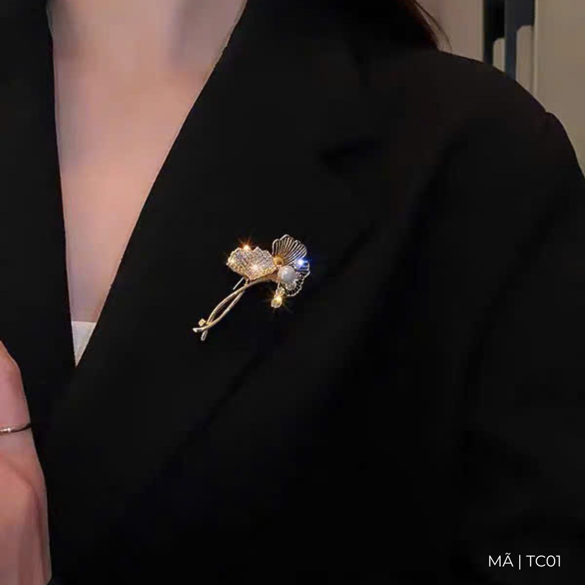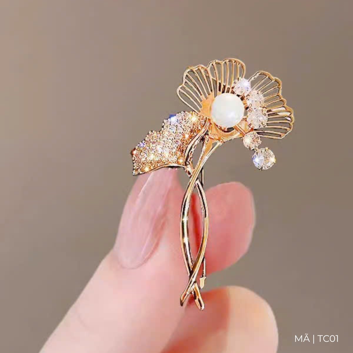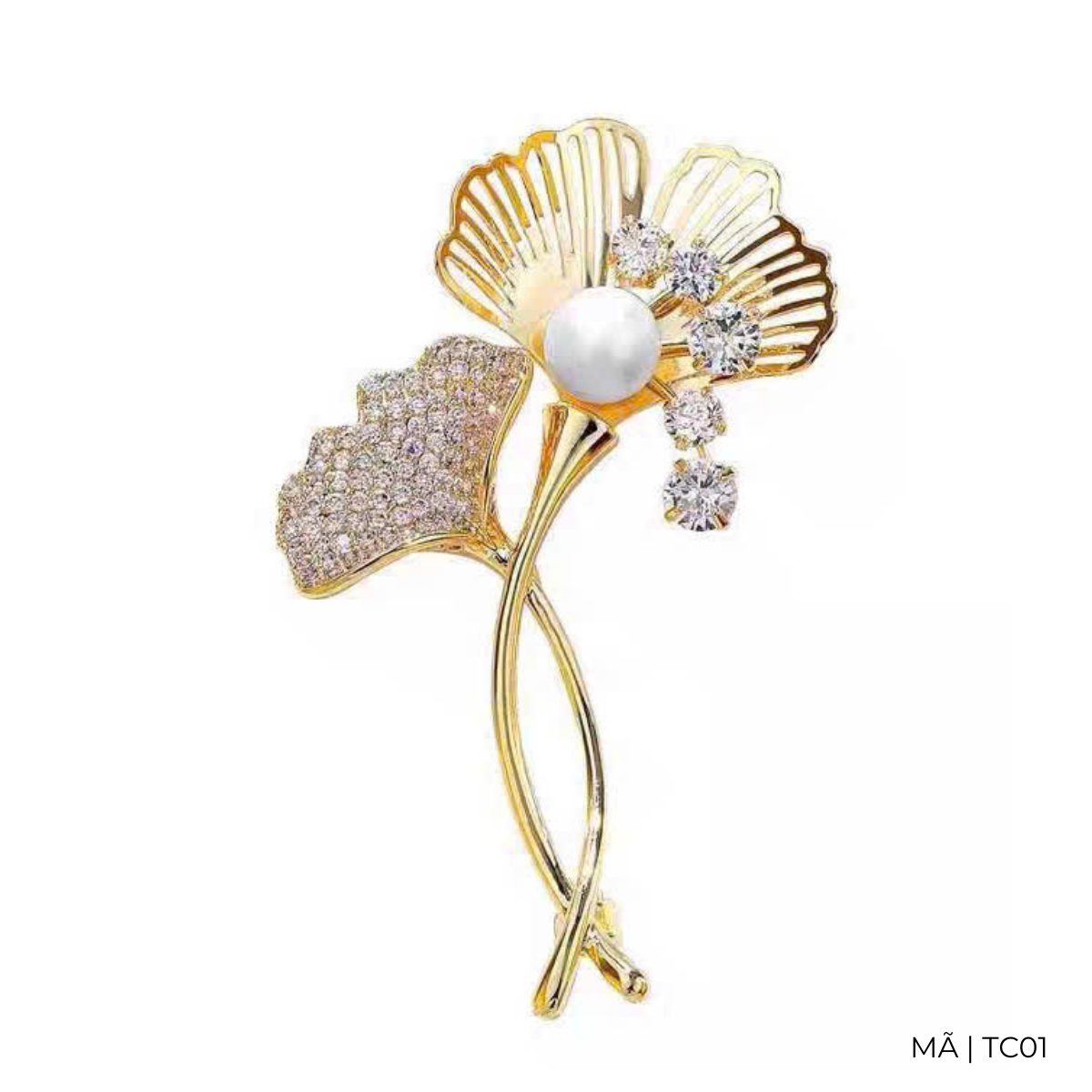 Trâm cài áo lá bạch quả dát đá zircon cao cấp TC01