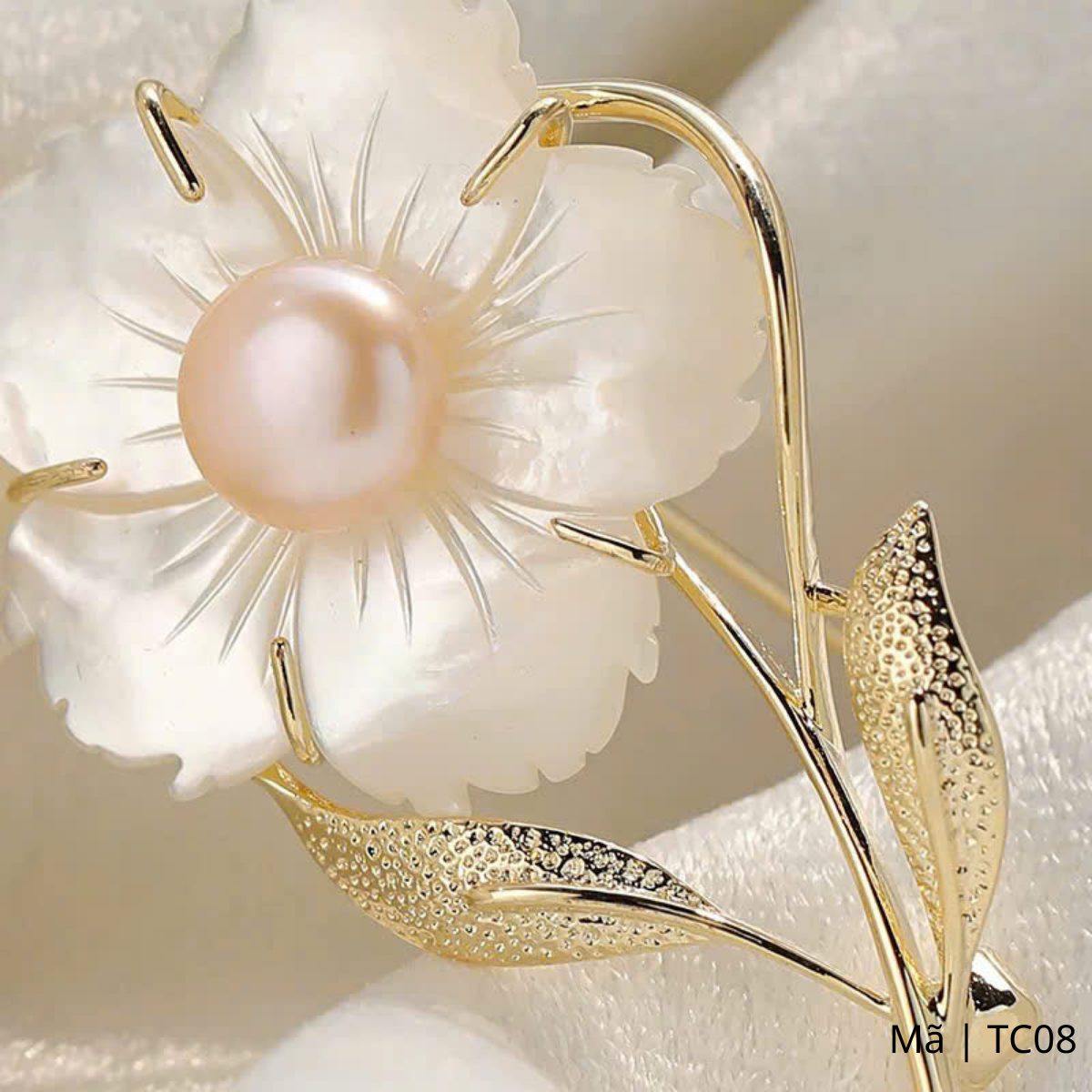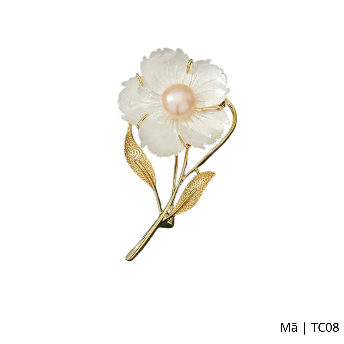Trâm cài áo hoa mai trắng đính ngọc trai thanh lịch sang trọng, TC08