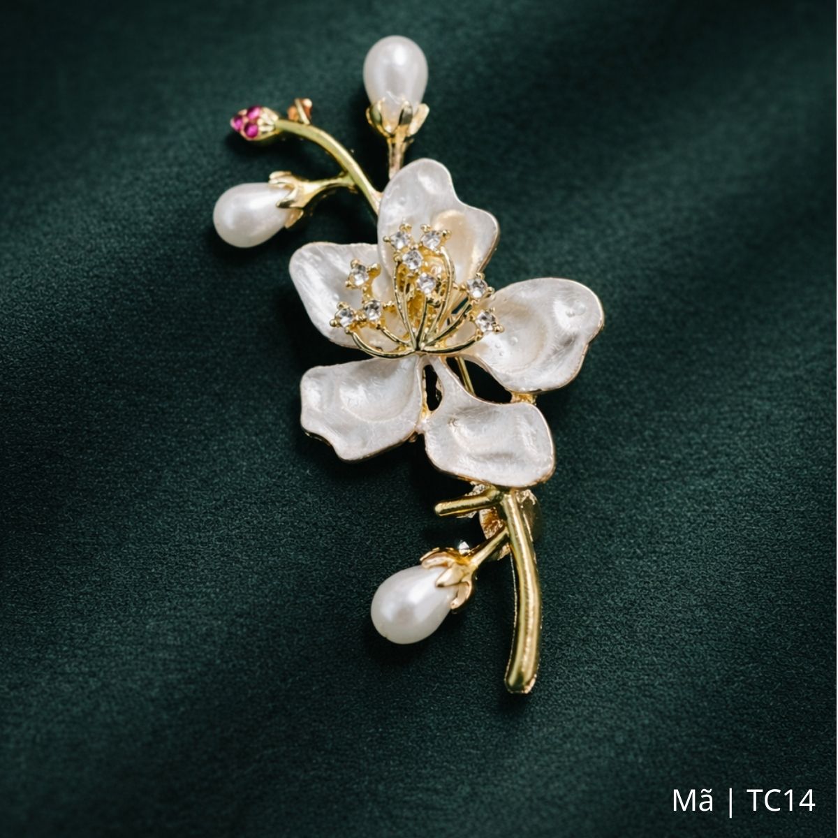 Trâm cài áo hoa mộc lan trắng đính ngọc trai thanh lịch,TC14